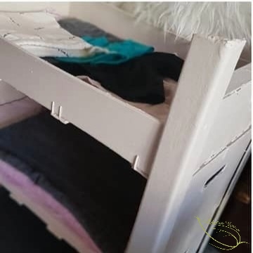 On passe à la catégorie brico (mais facile, hein) avec ce lit superposé pour poupées totalement zéro déchet fabriqué à partir de cagettes de fruits (récupérées au marché) sur le même modèle que les étagères que j’avais confectionnées pour la chambre de mon fils.