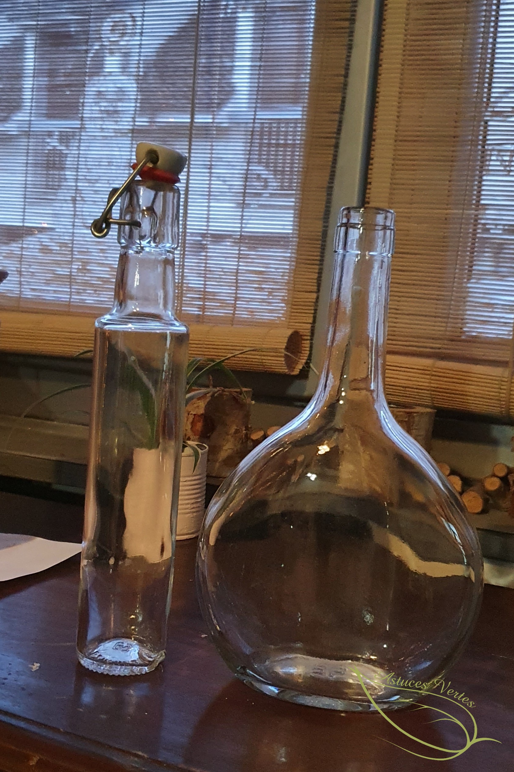 1- Lavez soigneusement vos bouteilles et laissez-les sécher à l’air libre. Puis, passez un chiffon imbibé de vinaigre blanc pour éliminer toute trace.