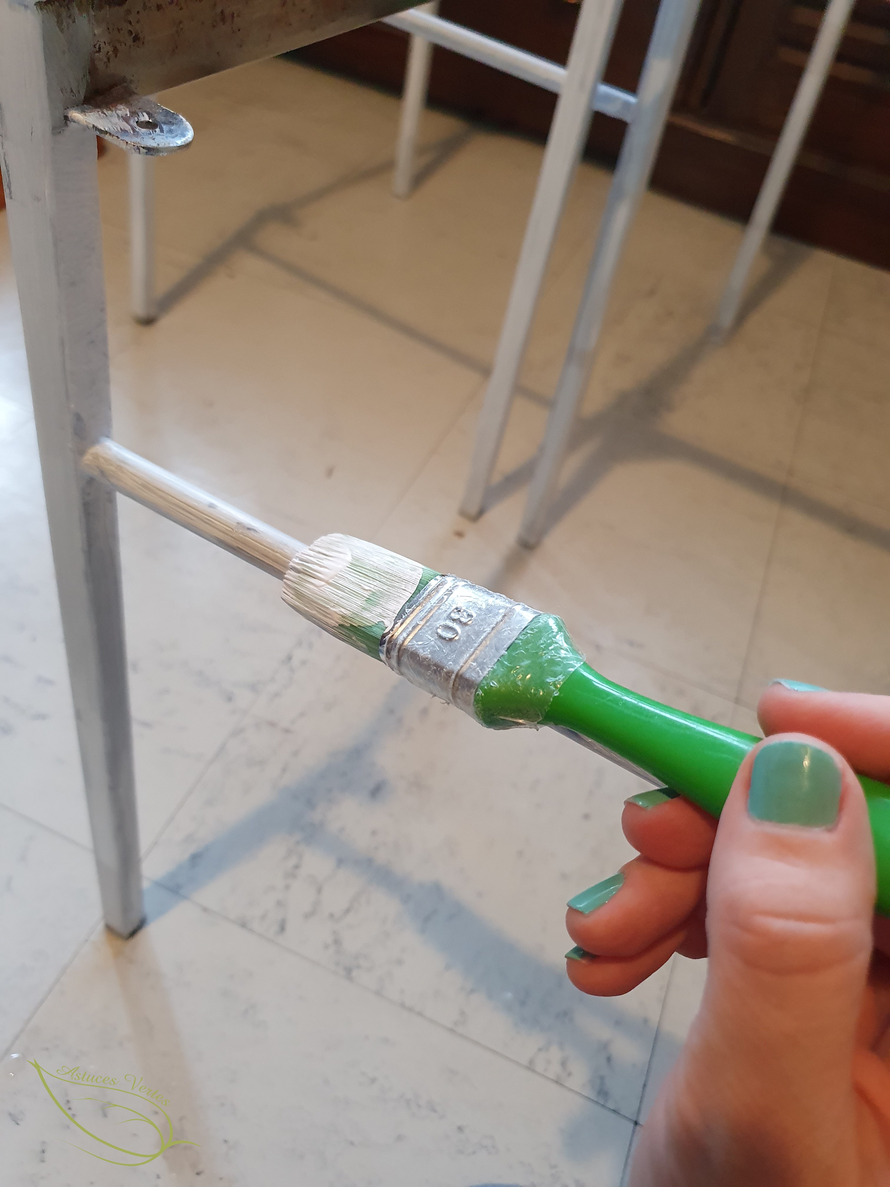 2- Ensuite j’ai repeint la structure en métal en blanc avec, confinement oblige, ce que j’avais sous la main :