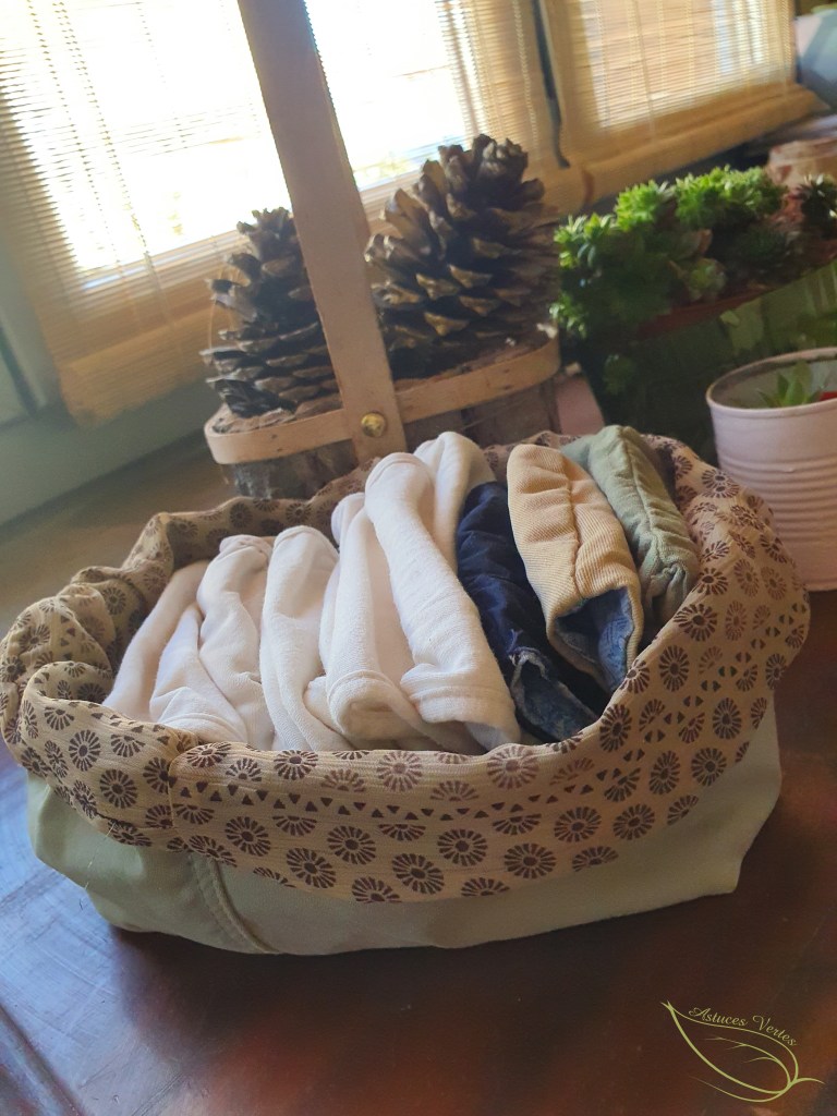 J’avais donc cousu un petit panier en tissu récup’ qui faisait le job, mais je ne le trouvais pas très esthétique.