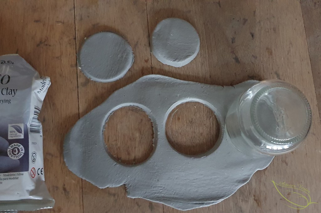 3- Prenez un second cercle et placez le verre à environ deux tiers du cercle et coupez afin d’obtenir un croissant de lune. Renouvelez l’opération sur un troisième cercle.