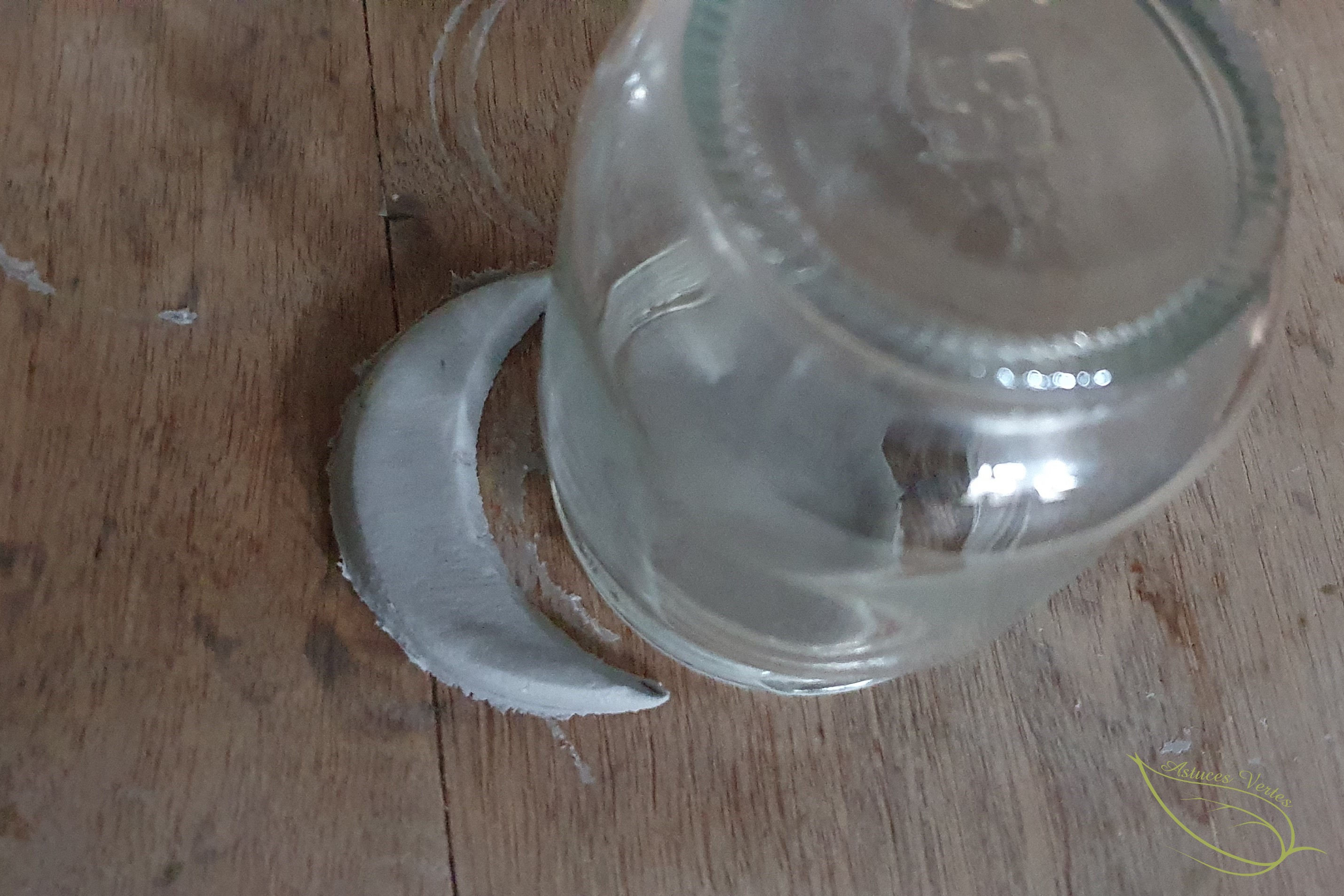 4- Toujours à l’aide du verre, retirez cette fois un tiers du cercle sur les deux cercles restants pour obtenir des demi-lunes.