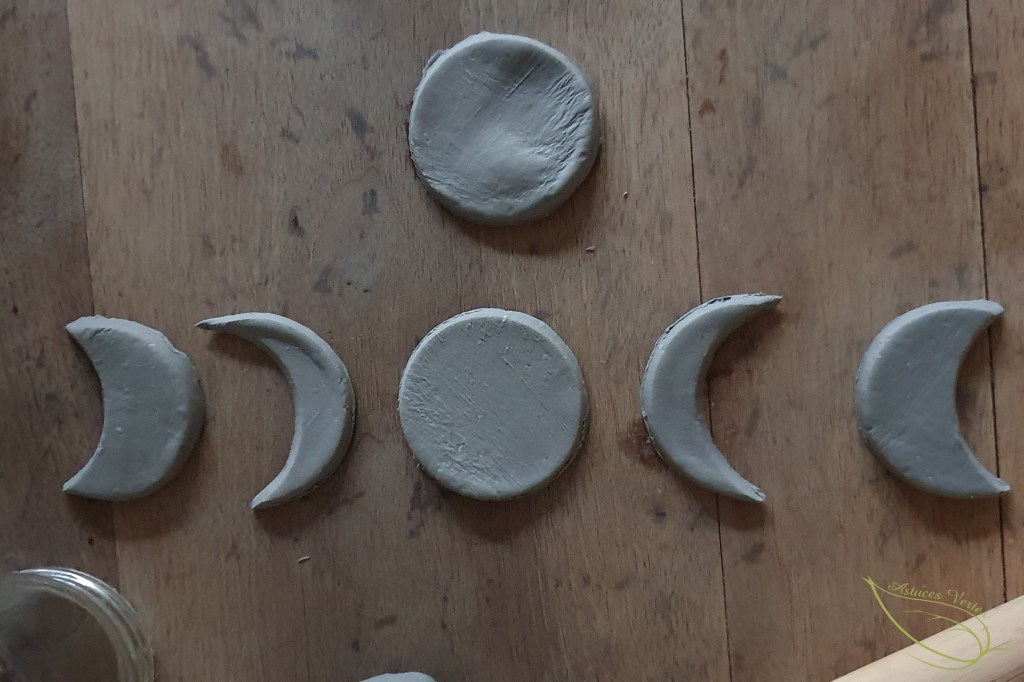 Hello à tous ! Pour célébrer la super lune des fleurs j’ai eu envie de créer un objet décoratif représentant les différentes phases de la lune. En farfouillant sur Pinterest j’ai repéré différents types de très jolies suspensions à base de pâte autodurcissante. J’avais justement un paquet de pâte effet pierre acheté chez Action que j’avais envie de tester et je me suis lancée.