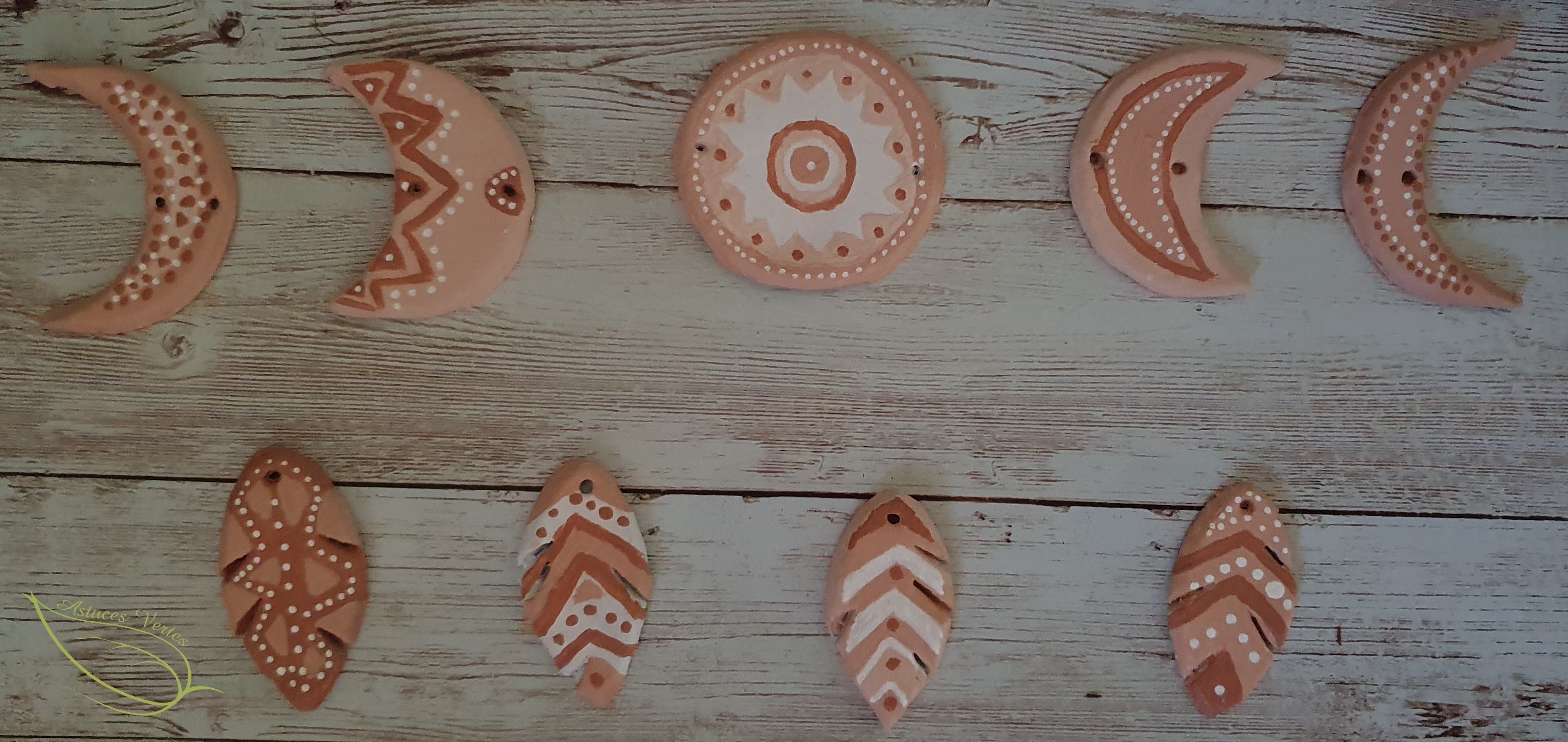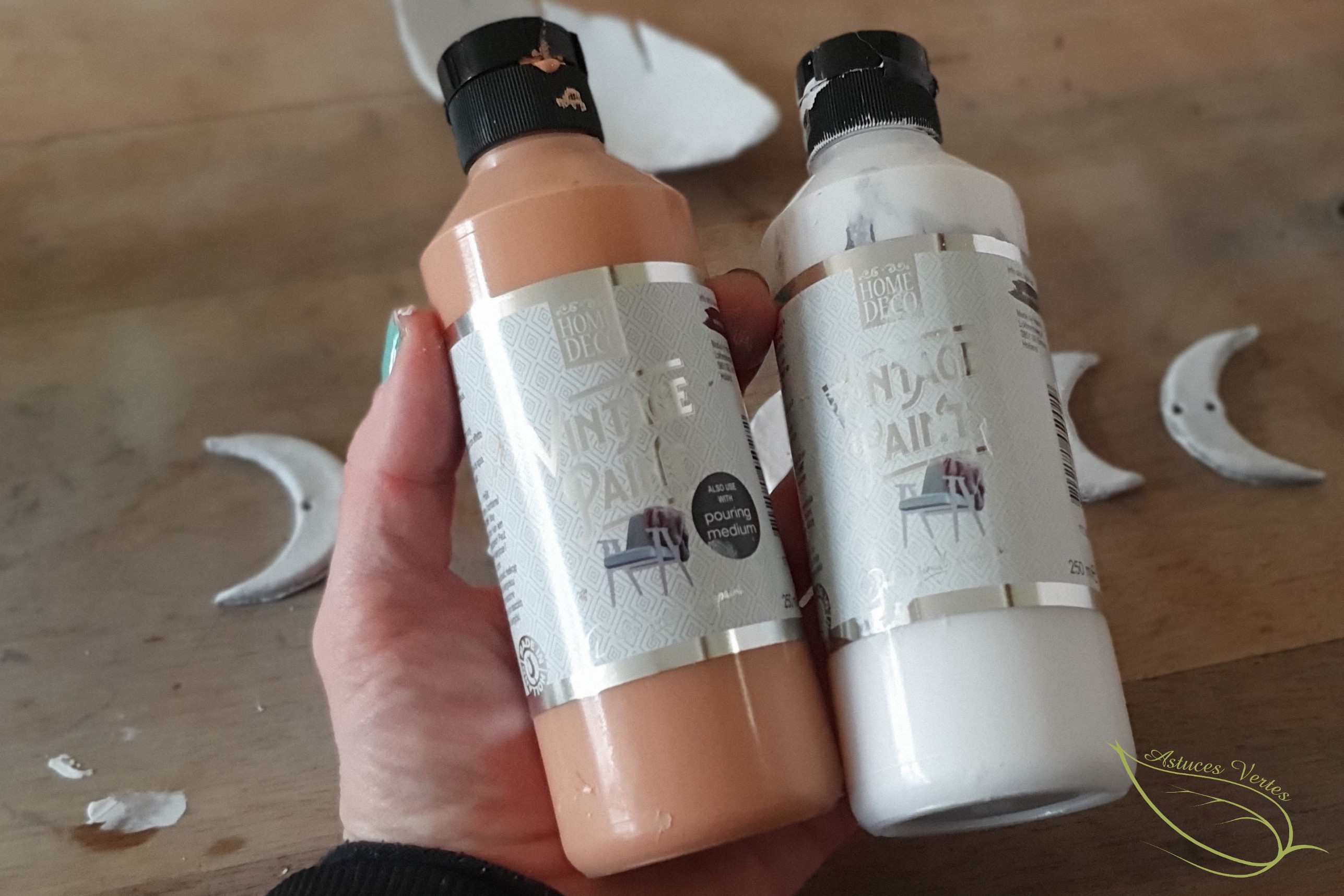 Au départ, j’avais prévu de peindre mes lunes avec de la peinture dorée. (C’est ce qu’on trouve beaucoup sur Pinterest). Mais je me suis retrouvée à court et après réflexion, j’ai improvisé avec la peinture terracotta de chez Action.