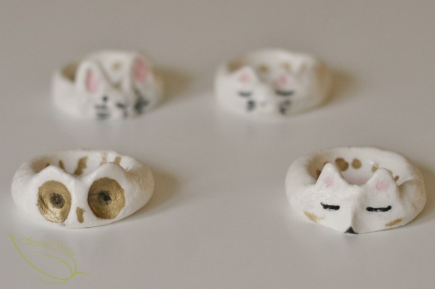 Pour mon premier essai de pâte fimo maison, je voulais créer des objets décos jolis et sympas, facile à réaliser par les débutants. L’idée de réaliser des petits coquetiers en forme d’animaux m’a paru vraiment chouette. Je suis partie du tuto des coquetiers lapins qui est vraiment très bien expliqué (en anglais) pour ensuite créer d’autres animaux.