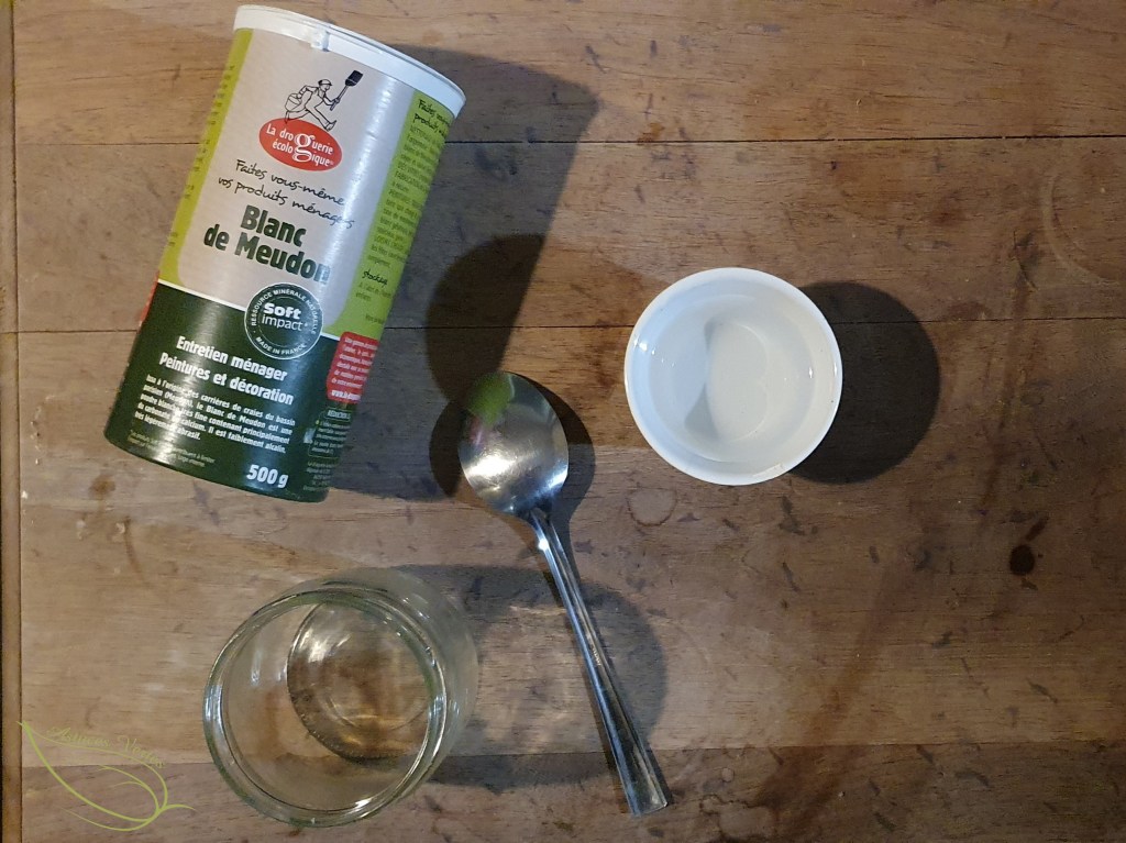 - Blanc de Meudon (3.52 euros le sachet de 500g en magasin bio ou de bricolage)