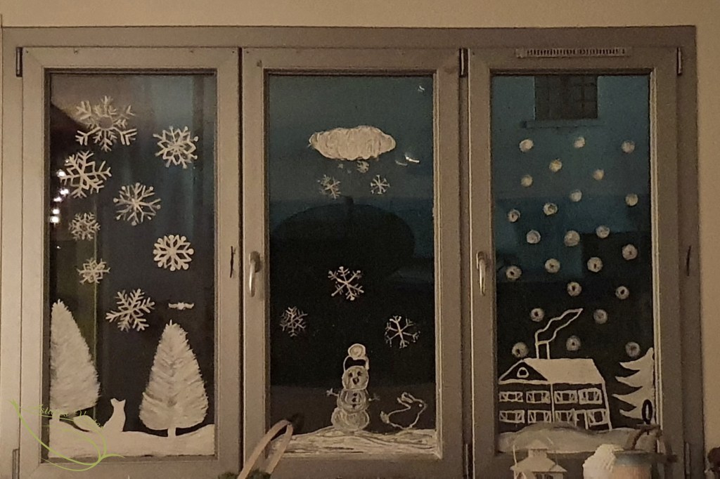 Vous pouvez utiliser un pochoir ou encore un modèle que vous scotcherez sur la vitre à l’extérieur. Vous n’aurez plus qu’à repasser les contours sur la fenêtre intérieure avec la peinture à la façon d’un calque.