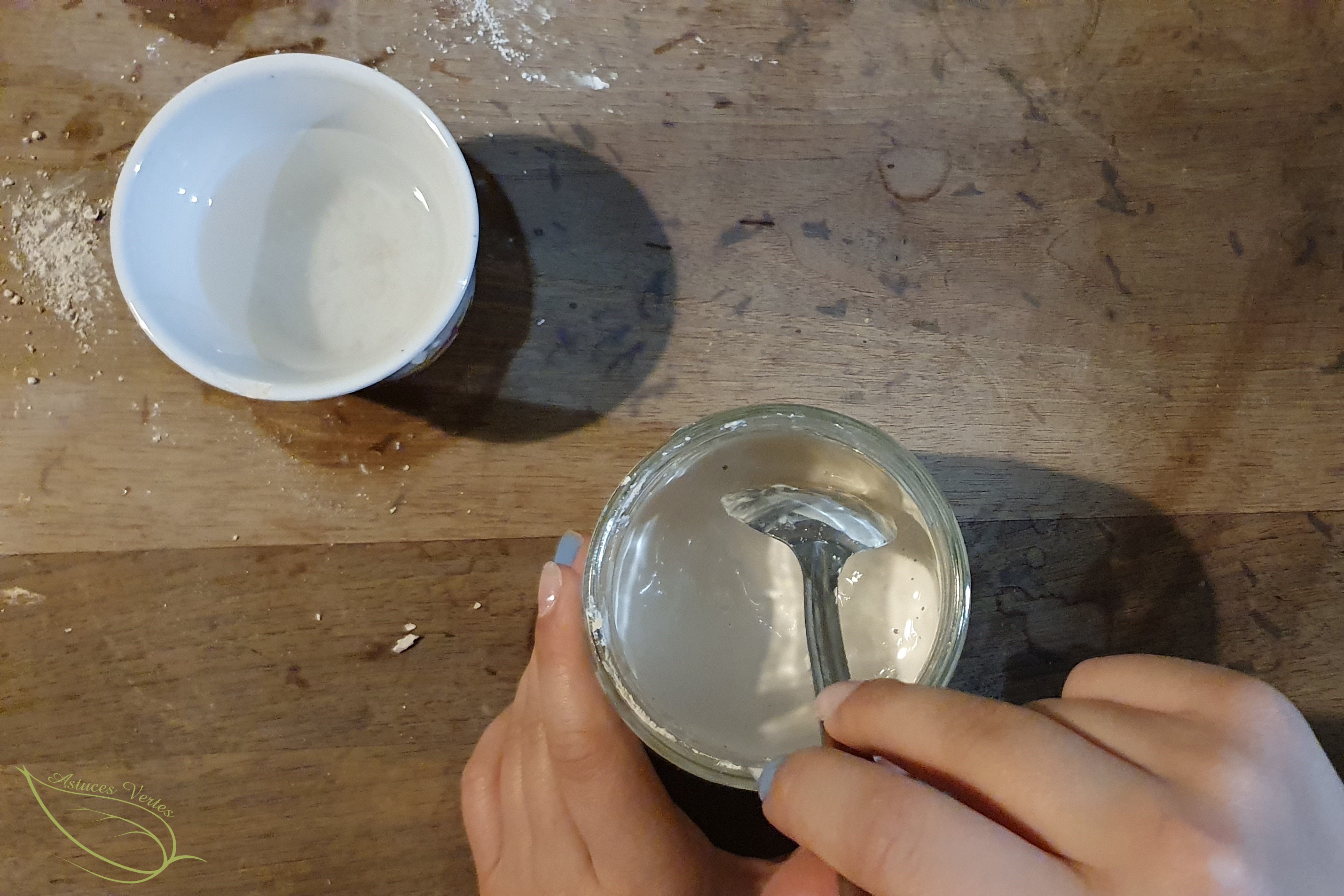 Le mélange doit être fluide. S’il est trop épais, il sera difficile de peindre, s’il est trop liquide vous aurez des coulures.