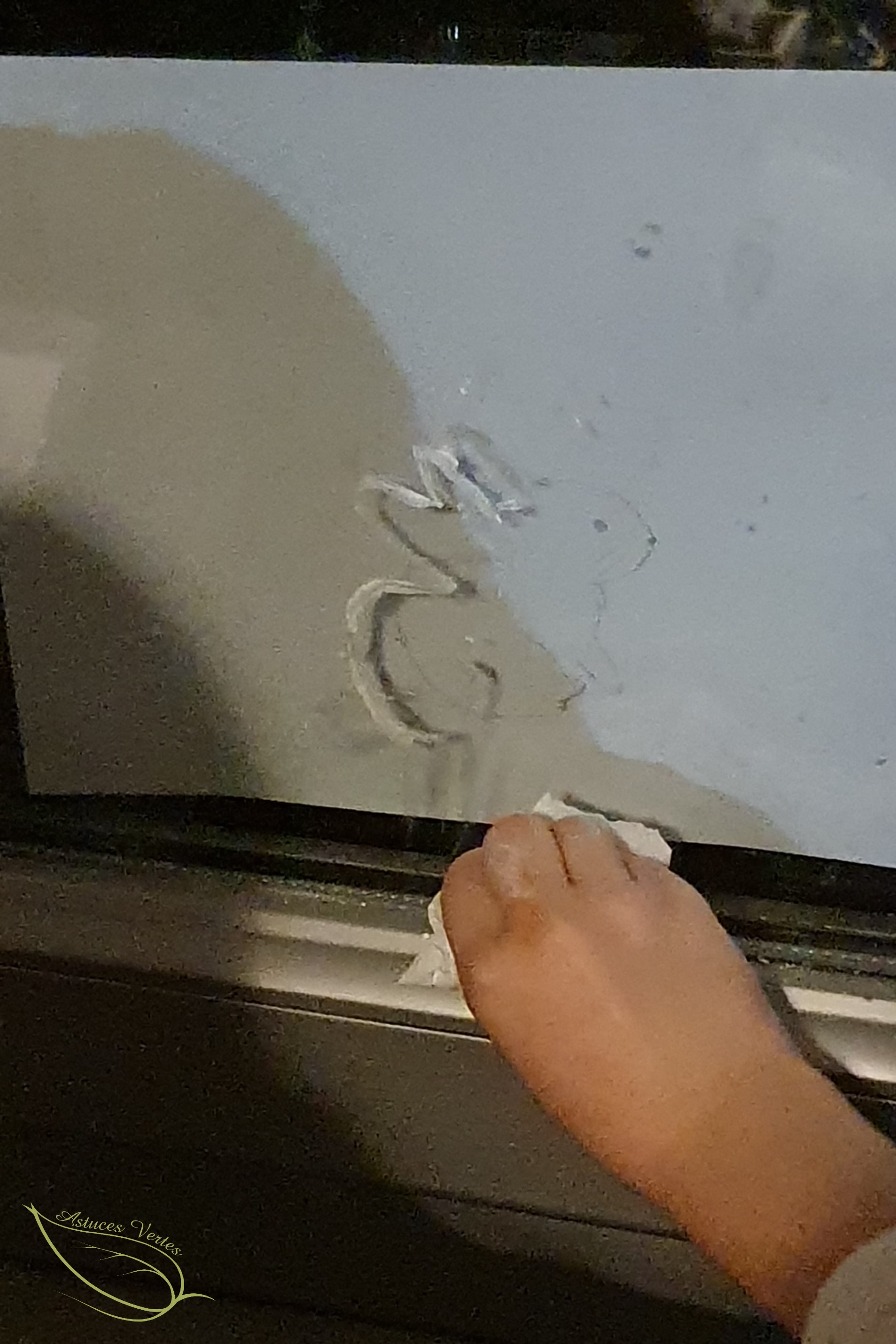 D’habitude, on décore nos fenêtres avec des flocons que l’on découpe dans du papier. Mais cette année, j’avais envie d’essayer une astuce que j’ai trouvée quelque part sur le net : la recette de la peinture pour les vitres à base de blanc de Meudon. Nous l’avons testée ce week-end et vraiment, c’est super ! Le blanc de Meudon est du carbonate de calcium. En gros du calcaire ou de la craie en poudre si vous préférez. Donc 100% naturelle, 100% écologique et 100% safe pour votre santé. Non seulement le rendu est super chouette, mais en plus, ça s’efface facilement d’un coup de chiffon sec.