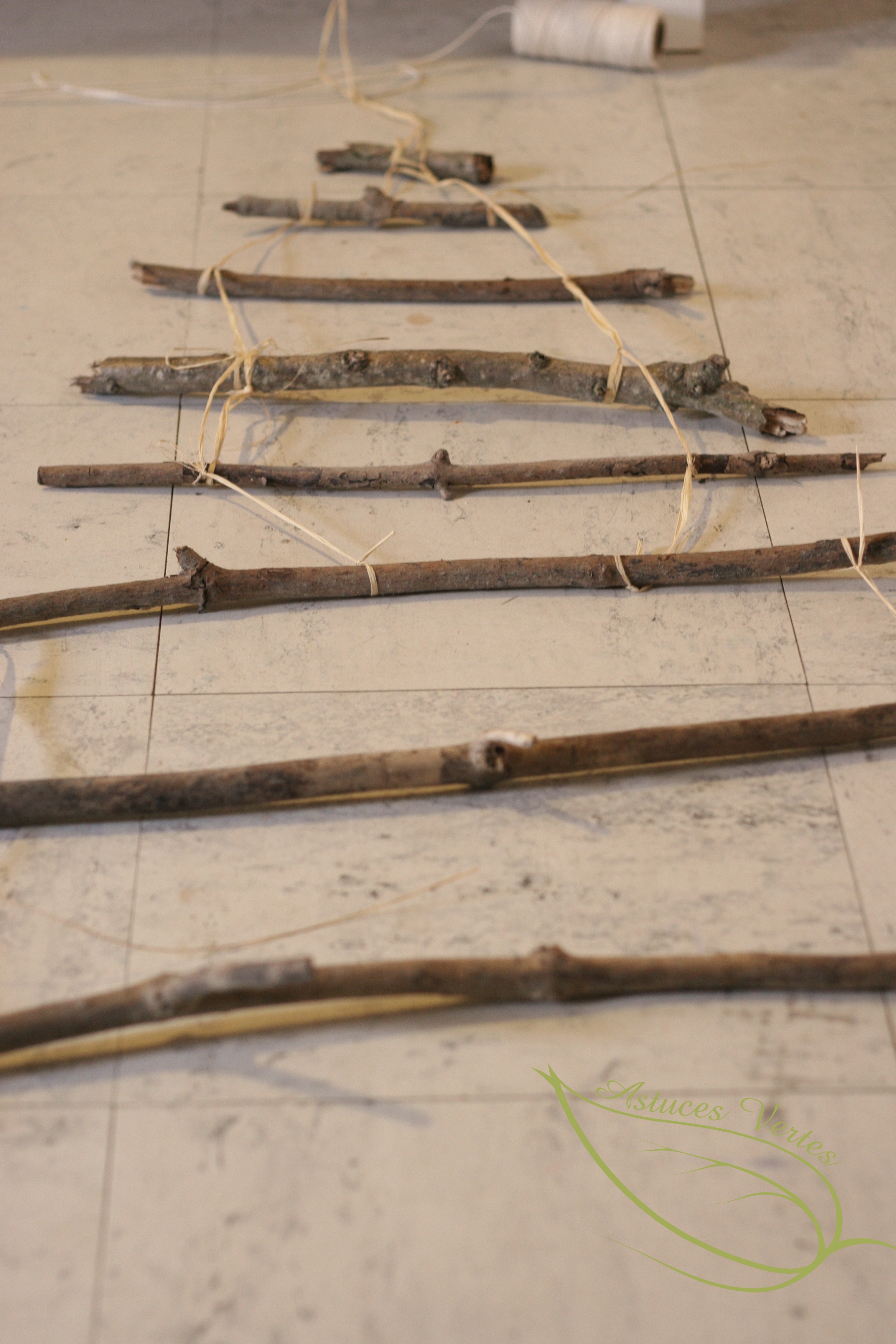 1- Étalez vos branches sur le sol en les disposant de la plus petite à la plus grande